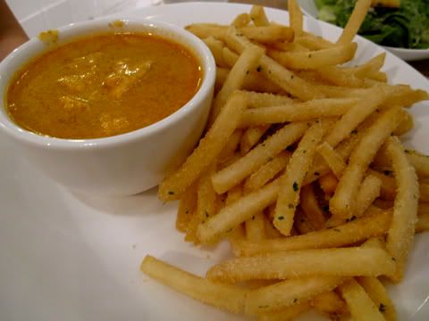 Another friend had the creamy salmon in a cup which, we were amused to find out, really came in a quaint tea cup. The salmon, which looked like it was floating in laksa gravy, had a decidedly unique taste which none of us could put our finger on. It tasted like carbonara pasta sauce mixed with a tinge of minestrone soup, which made for an odd eat. Again, the sour cream and onion fries tasted exactly like a regular can of Pringles.