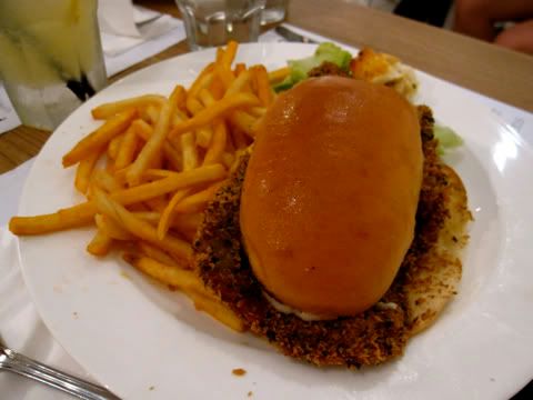 One friend had the pork cutlet sandwich with garlic and herbs shoe-string friends and the baby Caesar. The pork cutlet would turn out to be the best main course of the night, with tender, chewy meat wrapped in crispy batter. The fries, though, tasted exactly like garlic flavoured potato chips (which, technically, they were, but those are $2 a pack).
