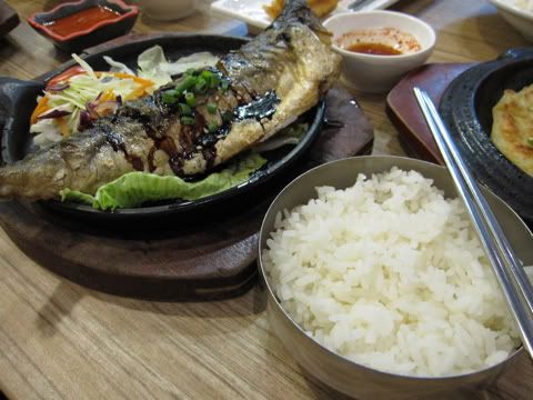 I had the fried saba fish with rice set (which is about all I eat at Korean restaurants, apparently) and it was fantastic. The fish were fried just right, without being overly oily or having too strong of a fishy taste. The meat was tender, the skin crisp and I devoured the entire thing to its bones.